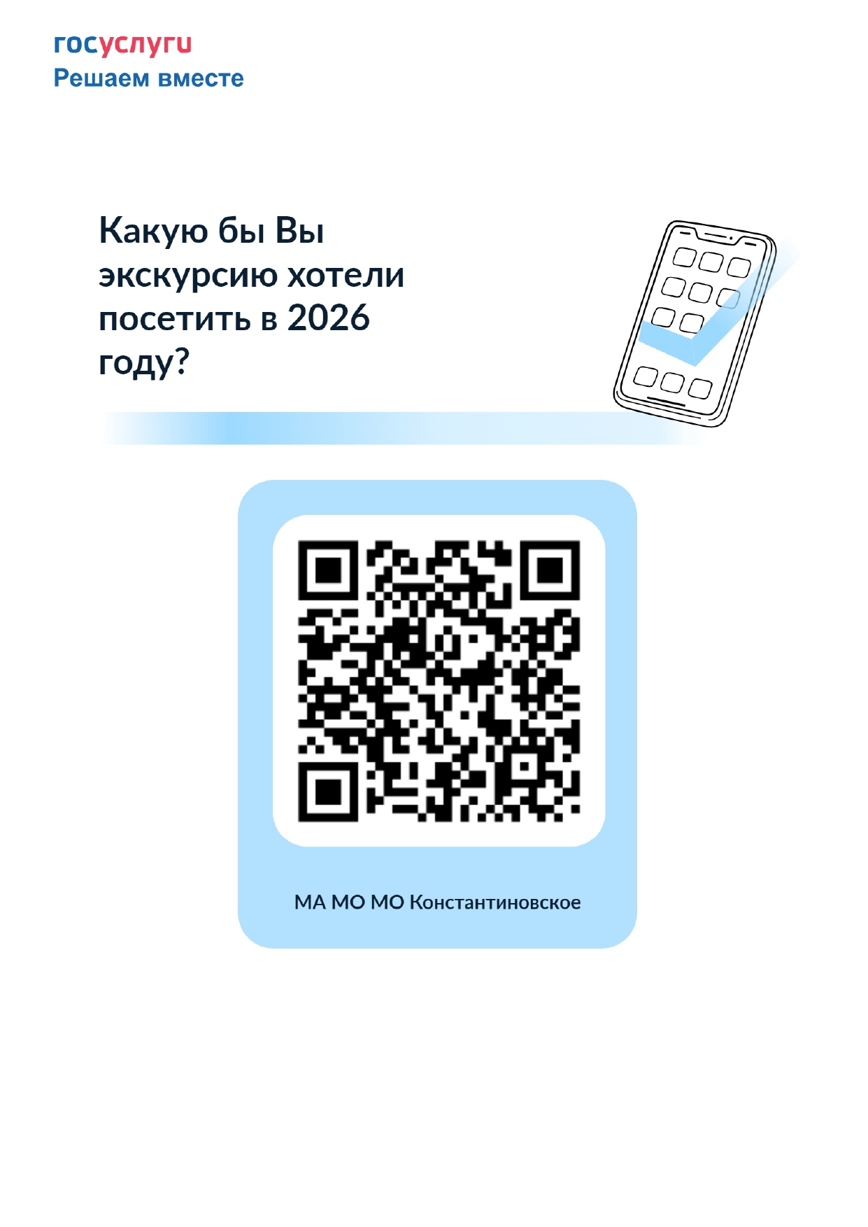 Опросы можно пройти на сайте МО Константиновское в блоке "Полезные ссылки" виджет "Госуслуги" или через Qr-коды: