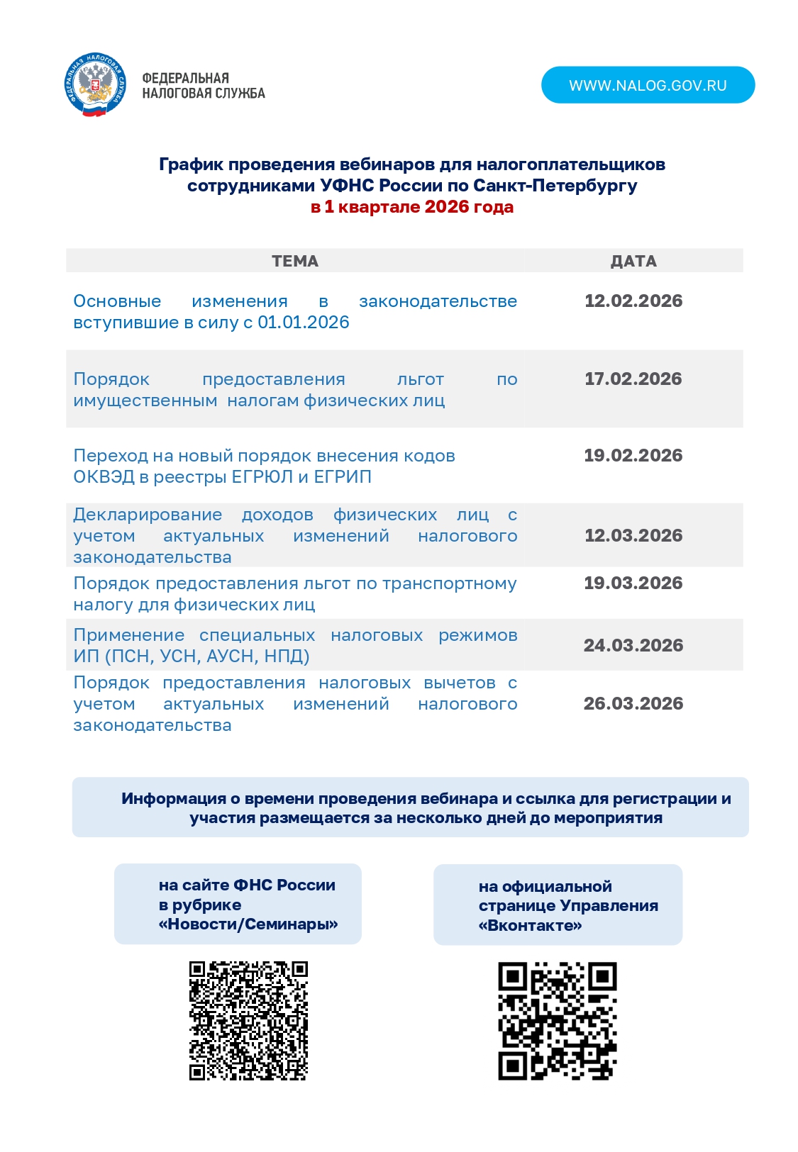 График информирования налогоплательщиков
